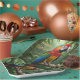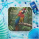 These party paper plates feature a handsome macaw parrot in a magical jungle. The text can be changed or eliminated.