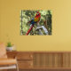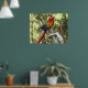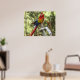 A photograph of a beautiful scarlet macaw posing for a picture on a poster
