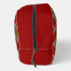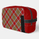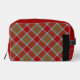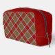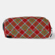 This dopp kit features the MacBain or MacBean tartan, a distinguished Scottish pattern chraacterised by a vibrant red field layered with forest green and navy blue blocks. Subtle white overchecks add refined detail to the classic plaid structure. This geometric arrangement celebrates highland clan heritage with a balanced and symmetrical aesthetic. The timeless colour palette and structured lines offer a distinguished look, reflecting historic textile craftsmanship and a proud connection to ancestral history.