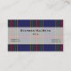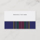 Stylish plaid business card done in the traditional colourful MacBeth tartan pattern. The front of the card has a black edged semi transparent white band, across the middle of the card, with custom black text. The back of the card is done in white, with a strip of plaid at the bottom, and black text on the white portion. Personalise all the text to suit your needs. Handsome and professional looking business card.