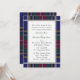 Lovely Scottish tartan plaid wedding invitation, done with a colourful MacBeth clan plaid. A white coloured text area, in the middle is bordered with a pewter tone edging. Text is in black and green and is fully customisable to suit your wedding needs. Personalise text as is, or customise to change colours and font styles.