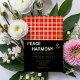 Ask friends and family to join in your wedding day celebrations with this modern wedding invitation. This stunning foil design features a two-tone tartan-style pattern with clean gold lines on a red background above gold text on a black background, giving a bold and charismatic impression of your special occasion.