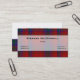 Stylish plaid business card done in the traditional blue, red, green, and purple clan MacDougall tartan pattern.  The front of the card has a black edged semi transparent white band, across the middle of the card, with custom black text.  The back of the card is done in white, with a strip of plaid at the bottom, and black text on the white portion.  Personalise all the text to suit your needs.  Handsome and professional looking business card.