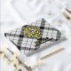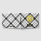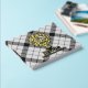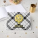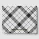 Clan MacFarlane crest badge surrounded by a strap and buckle over black and white tartan background. Custom front, back and spine text.