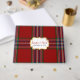 Colourful wedding guest book done in the classic red Scottish clan MacFarlane tartan plaid pattern. A decorative text area, on the front of the book, has custom text ready to personalise. Matching wedding products are available.