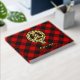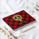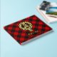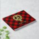 Clan Gregor or MacGregor crest badge surrounded by a strap and buckle over Rob Roy tartan background. Custom front, back and spine text.