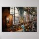 Back in the day, machines looked like this. Big belts, wheels on the ceilings. There was power, and there were motors, but only big ones that ran the belts. The smaller ones weren't made yet. If you removed the belts, it would look like a regular machine shop. Looking for POSTERS of this or any of these designs?