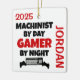 This ornament featuring the quote "Machinist by Day Gamer by Night" is perfect for any machinist that loves playing video games.