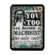 Machinist vintage advertisement in turquoise, aqua, red and black. Arty, funny, colourful and fun, it makes a great gift and will surely bring smiles and laughter to the recipient.