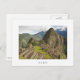 Postcard of the ruins of the ancient Inca city Machu Picchu in the Sacred Urubamba Valley near Cusco in Peru with a white border and the text: 'Peru'.