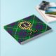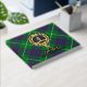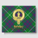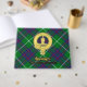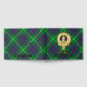 Clan MacIntyre crest badge surrounded by a strap and buckle over tartan background. Custom front, back and spine text.