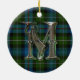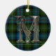 Ornate monogram letter M ornament, with the MacKenzie clan tartan plaid as a background. Great looking family heirloom ornament. Makes a great gift ornament and decoration for other uses around the house.
