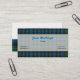 Stylish plaid business card done in the colourful blue, red, and green traditional MacKenzie tartan pattern. The front of the card has a white semi transparent band, across the middle of the card, with custom blue and black text. The back of the card is done in white, with a strip of plaid at the bottom, and black text on the white portion. Personalise all the text to suit your needs. Handsome and professional looking business card.