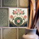A fresh take on classic Mackintosh-inspired design, this elegant ceramic tile features stylized roses arranged like a faux stained-glass panel. Clean geometric framing, bead-chain details, and sweeping curved stems create a refined Art Nouveau look with a hint of Art Deco structure. The soft ivory background and muted palette of deep teal, sage green, and dusty blush pink are finished with warm metallic-gold outlines for a layered, dimensional effect. Perfect as a decorative wall accent, kitchen backsplash detail, bathroom feature tile, fireplace surround, or gift for lovers of vintage floral design.
