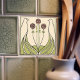 Inspired by Mackintosh, I created a calm, modern interpretation of his Art Nouveau designs. Two stylized birds mirror each other in an elegant frame, surrounding slender stems topped with three geometric rose blooms. Clean black linework, soft blush roses, and muted sage-green leaves create a serene, airy look that works beautifully as a decorative wall tile, backsplash accent, bathroom detail, fireplace surround feature, or framed tile display. A thoughtful gift for lovers of Arts & Crafts, Glasgow style, minimalist floral art, and timeless vintage-inspired décor.