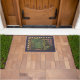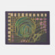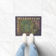 Mackintosh style art nouveau/deco doormat in shades of purple gold lilac green and turquoise, with sylized rose and lozenge shapes