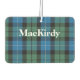 Plaid air freshener done in the classic blue, green, white and black Scottish clan MacKirdy plaid pattern. Personalise the white text to read what you want.