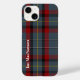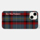 Stylish iPhone case mate phone case done in the traditional black, grey and red Scottish tartan plaid of the MacNamara clan. Custom text running vertical, on the left side, is ready to personalise. Stylish and great way to protect your smart phone, and makes a great gift idea.