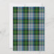 Scottish clan MacNeil wedding invitation done in the classic sky blue, grey, black, yellow and green tartan plaid pattern, with a silver tone edged decorative white text area. Graphics of a two unicorn heads with a thistle between them, decorates the top of the invitation. Personalise the custom text to suit your highland themed wedding.