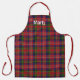 Handsome plaid apron done in the traditional and colourful clan MacPherson tartan pattern. White custom text, on the bib area, is ready to personalise for yourself or as a great gift idea.