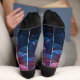 This pair of Aurora Bloom socks radiates from a golden core through hot pink into translucent azure petals. Each sock showcases the complete artwork as a singular focal point. A fusion of vintage botanical inspiration and AI imagination