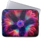 Fuel your creativity with energetic art. The Radiant Riot laptop sleeve bursts with vibrant magenta and blue stamens and paint-splatter petals in pink, purple, and cyan. A dynamic, padded case that turns your laptop into a mobile canvas