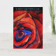 Perfect for Valentine's Day with original art design from watercolour painting by Sacha Grossel of large, close focus, macro style red rose with blue highlights and Valentine's Day greeting. This traditional English flower with crimson petals has a bright, intense colour design that conveys the abstraction of the botanical form and themes of love and passion.