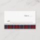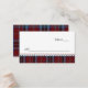 Lovely tartan plaid wedding reception place card / escort card, done in white, with a band of blue, red, and black clan MacTavish tartan plaid, at the bottom. Graphics of a decorative scalloped edge and a red stitching look, decorates the text area. Matching wedding products available.
