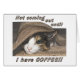 Do you feel like this until you have your coffee? "Not coming out until I have coffee!!" Macy, a young, full blooded Calico cat has climbed under a rug thinking she is hiding.
