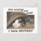 Here's a fun and cute Post card - Do you feel like this until you have your coffee? "Not coming out until I have coffee!!" Macy, a young, full blooded Calico cat has climbed under a rug thinking she is hiding.