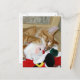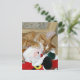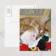 orange tabby cat plays with, bites stuffed Santa Claus toy photo Christmas postcard