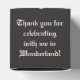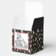 Square classic-style favour box with a vintage Alice in Wonderland image, on the front and back, of the Mad Hatter serving tea to Dormouse with a red border on a black and white Wonderland background. The customisable text on the top reads “Thank you for celebrating with me in Wonderland!" See the entire Wonderland Favour Box collection in the PARTY FAVORS section.