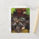 The card is thick and durable but I wish it came in a larger postcard size. Gorgeous. The postcard is in matte but I bet a semi gloss folded card would make the colors pop even more. The design is so fun and whimsical. It's perfect for my crazy cat loving mom. Love it!
