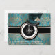 This wonderful Mad Hatter Alice in Wonderland save the date postcard will set the tone for your whimsical special day. It features a vintage damask pattern over a distressed emerald green design, an antique time piece and of course the Mad Hatter hat complete with a jewelled hat pin. There's a quote from Alice in Wonderland on the front which can easily be changed or eliminated when you click on the orange button to customise the postcard.