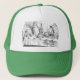 green trucker hat with the tea party scene from alice in wonderland. original characters not
