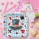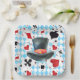 A Blue Pattern With Suits Of Cards Square Paper Plate Designed In Alice In Wonderland's Mad Hatter's Hat