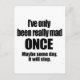 Funny, sarcastic attitude text design saying: I've only been mad once.. Maybe someday it will stop.