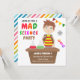 Amaze your guests with this colourful science birthday party invitation featuring a laboratory boy doing an experiment against a white background. Simply add your event details on this easy-to-use template to make it a one-of-a-kind invitation. Flip the card over to reveal a colourful stripes pattern on the back of the card.