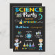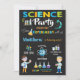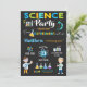 Personalize this awesome science party invitation with your child's name, age and party details easily and quickly, simply press the customise it button to further re-arrange and format the style and placement of the text. Some of the images can be moved around to accommodate your party details.