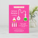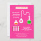 This modern and eye-catching invitation is ideal for a Mad Science theme party. It features a “Science Laboratory” sign and a few lab instruments on a solid colour background. This hot pink design is great for a curious and adventurous girl. Add your own wording.