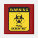 Warning - Mad Scientist - warning sign style design in red, yellow and black with biohazard symbol.