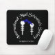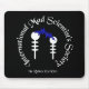 Black mousepad with International Mad Scientist's Society seal in white script lettering with blue fractal spark and the Latin motto "En Rabies Est Vox" (In Madness Is Power)