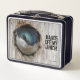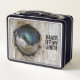 This is a standard metal lunchbox that appears to work just fine. We designed this box ourselves with an uploaded photo and custom text on the front and back. It looks absolutely beautiful except the front of the lunchbox is not centered like it shows in the photo. The print borders don't align with the inset flat part of the box where the preview photo online showed it perfectly centered in there. The back looks nice and centered though.