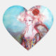 Elegant ,colourful ,classy and unique design in bright ,red ,pink ,blue white colours .Beautiful sophisticated blonde woman character,sparkling fabrics of a baroque costume with a red rose. Original watercolor and acrylic painting with gold foil and iridescent colours on canvas.