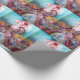 Elegant ,colourful ,classy and unique design in bright ,red ,pink ,blue white colours .Beautiful sophisticated blonde woman character,sparkling fabrics of a baroque costume with a red rose. Original watercolor and acrylic painting with gold foil and iridescent colours on canvas