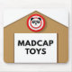 Who wouldn't want a cool looking mousepad for their home office? This Madcap Toys Toy Barn mousepad is perfect for either your desktop/laptop at your home office or office room at your day job. If you love toys, then you'll love MADCAP TOYS! This logo features not only our toy barn but our logo hanging at the top which features our mascot, MCT Bear!