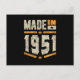 Made In 1951 Birthday Gift Postcard