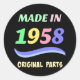 Made in 1958, colourful text design classic round sticker