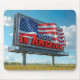 A large billboard featuring a wave-like American flag and the prominent words "Made in America" stands in a field of flowers under a bright blue sky