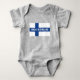 Made in Finland baby clothes for newborn child. Funny one piece bodysuit for new baby boy or girl. Finnish heritage design with national flag. Cute gift idea for new mummy and daddy.